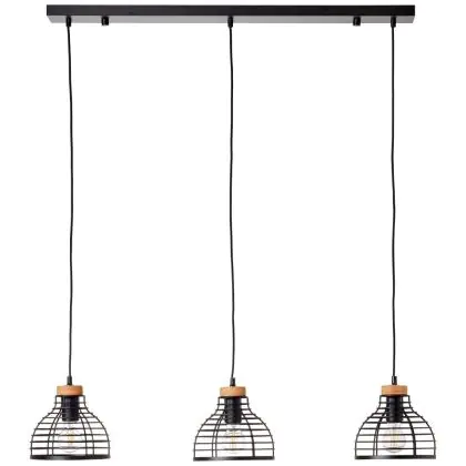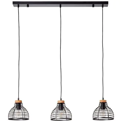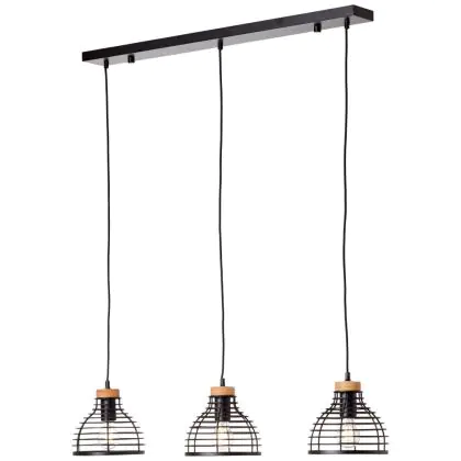 Brilliant Avia Pendelleuchte Metall Holz Schwarz Holz | Geeignet für 3x E27