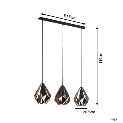 Eglo Pendelleuchte Carlton 1 Schwarz, Bernstein | Geeignet für 3x E27