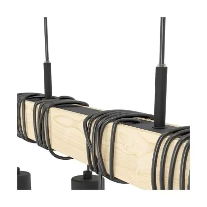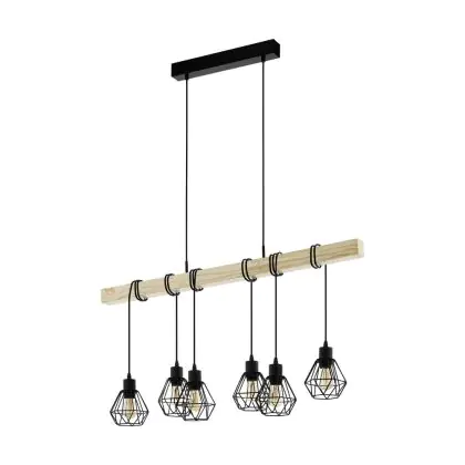 Eglo Pendelleuchte Townshend 5 Stahl Holz Schwarz | IP20 - Geeignet für 6x E27