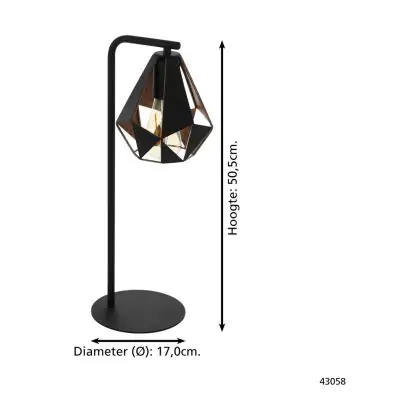 Eglo Tischlampe Carlton 4 Stahl Schwarz Bernstein | IP20 - Geeignet für 1x E27