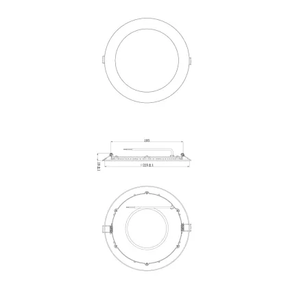 | Herstellername | Budgetlight LED Downlight Slim V2.0 IP44 20W 3000K Cutout Ø200mm Frame Ø225mm | |