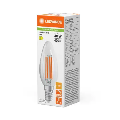 Ledvance Classic LED E14 Kerze Fadenlampe Klar 3.4W 470lm - 827 Extra Warmweiß | Dimmbar - Ersatz Für 40W