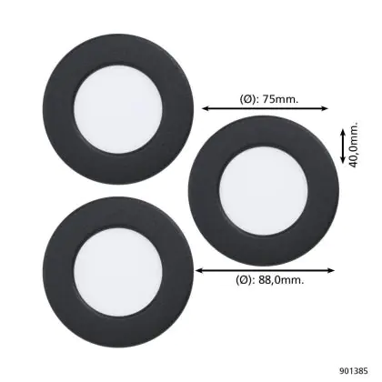 Mehrfachpackung 3x Eglo Einbau Spot Fueva 6 Plastik Schwarz 11.1W 1350lm - 827-840-865 CCT