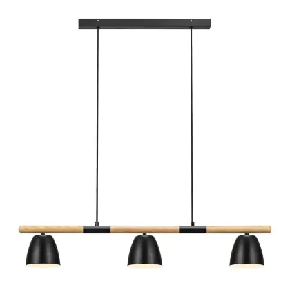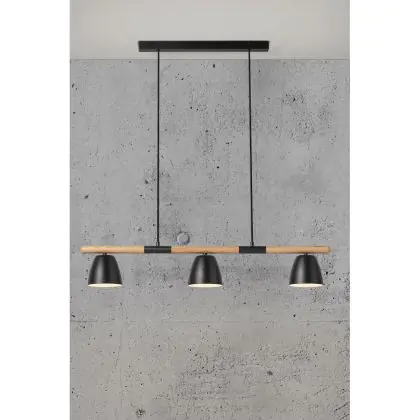 Nordlux Theo 3-Rail Pendelleuchte Metall und Holz Schwarz | Geeignet für 3x GU10