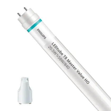 Bei der Philips LED Röhre 150cm | 4000K 20.5W - Master Value HO handelt es sich um eine energieeffiziente LED-Röhre. Sie ersetzt Ihre konventionelle Leuchtstoffröhre mit 58W. Die Röhre ist 1500 mm lang und hat die Farbtemperatur 4000K - Kaltweiss. Die durchschnittliche Lebensdauer der LED-Röhre beläuft sich auf 60000 Stunden. Wir bieten Ihnen für dieses Produkt eine Garantie von 5 Jahre an.