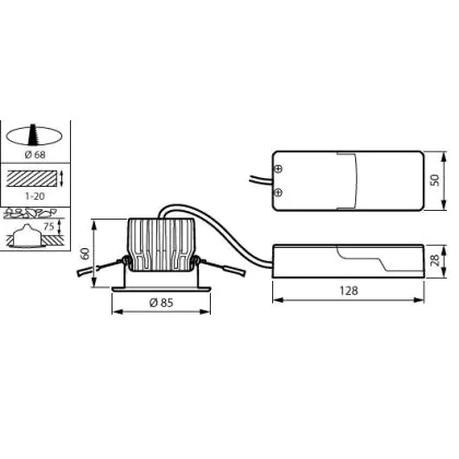 Der Ausschnitt einer Leuchte unterscheidet sich von den Abmessungen der Leuchte selbst und bezeichnet speziell die Grösse der Öffnung in der Decke, die für die sichere Montage der Lichtquelle benötigt wird.