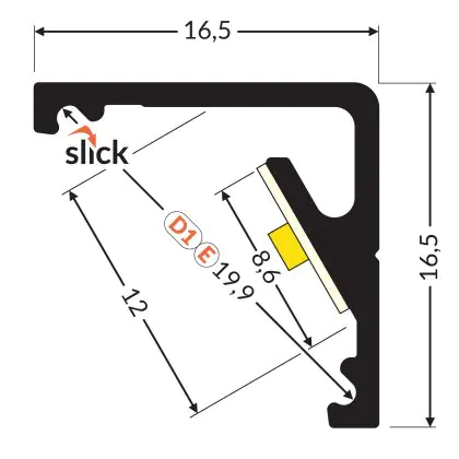 Topmet LED Profil CABI12 E slide - 1m - Complete set - Aluminium raw alu.