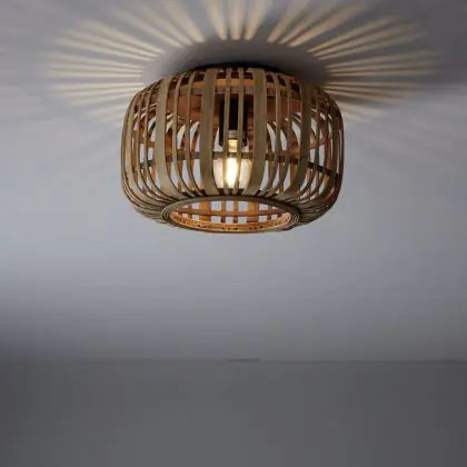 Brilliant Boisrow Plafonnier Métal Bambou Brun | 320mm - Convient pour 1x E27