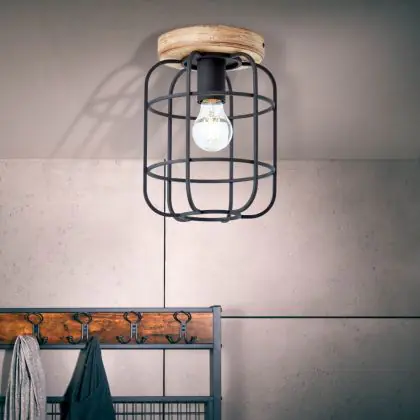 Brilliant Gwen Plafonnier Métal Bois Noir | 200mm - Convient pour 1x E27