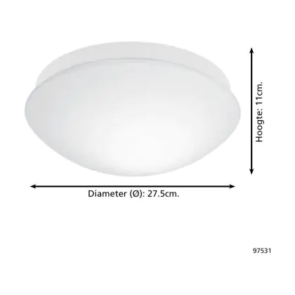 Eglo Plafonnier Bari-M Blanc | IP44 - Détecteur de Mouvement et de Lumière - Convient pour 1x E27
