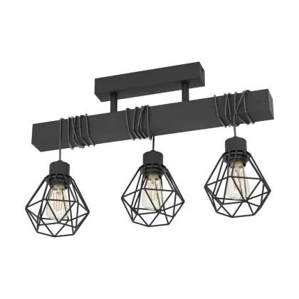 Eglo Plafonnier Townshend 5 Échantillon Bois Noir | IP20 - Convient pour 3x E27