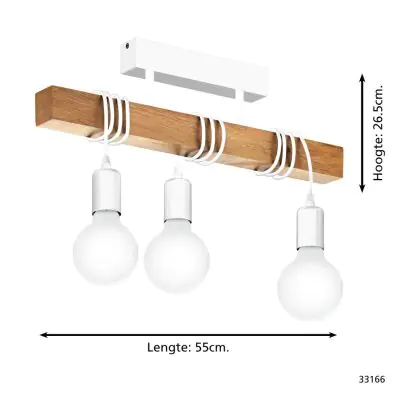 Eglo Plafonnier Townshend Échantillon Blanc Bois | IP20 - Convient pour 3x E27