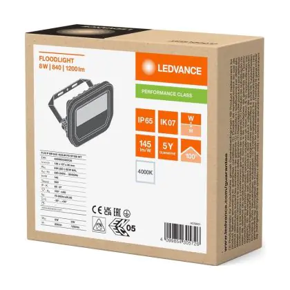 Description Ledvance Projecteur LED Aluminium Blanc 8W 1200lm 100D - 840 | IP66 - Symétrique