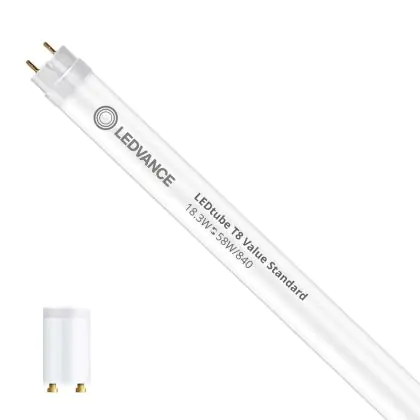 Ce tube LED Ledvance tube LED 150cm | 4000K 18.3W - Value est l’un des produits les plus éconergétiques en remplacement des tubes T8 classiques. Avec ce tube LED vous êtes donc assuré de sa qualité. Avec une puissance de seulement 18.3 W, ce tube LED a la même intensité lumineuse qu’un tube classique qui consomme 58 W.