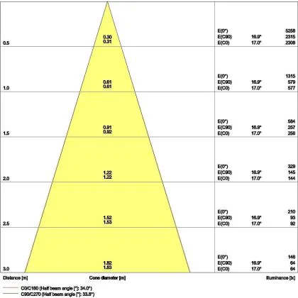 ![]() Le code couleur se compose de l'indice de rendu des couleurs (IRC) et de la température de couleur (Kelvin). Le premier chiffre indique le rendu des couleurs (1 = très mauvais rendu des couleurs, 9 = meilleure authenticité des couleurs). Le deuxième et troisième chiffre indiquent la température de la couleur. Exemple : Le code couleur "830" indique que la lampe a un bon rendu des couleurs (8) et une couleur de lumière blanche chaude (30 = 3000K). |