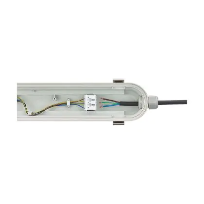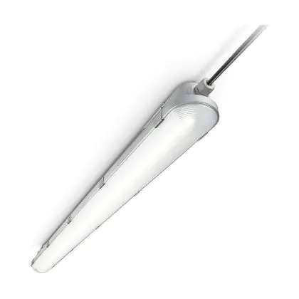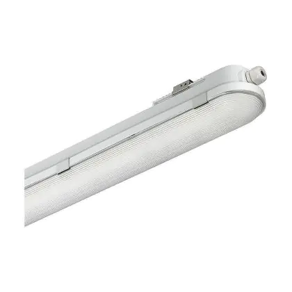 La réglette LED, Lot 4x Philips Réglette LED Étanche CoreLine WT120C G2 42.9W 6000lm - 840 Blanc Froid | 150cm est conçue pour remplacer les réglettes TL-D traditionnelles et permettant d’économiser jusqu’à 50% d’énergie. Très souvent utilisé pour l’éclairage d’entrepôts, d’usines, de parking et d’autres grands espaces extérieurs. Très simple d’installation, cette réglette de 150cm peut se fixer au plafond et au mur et projette , comme couleur de lumière. La Lot 4x Philips Réglette LED Étanche CoreLine WT120C G2 42.9W 6000lm - 840 Blanc Froid | 150cm dispose d’un indice de protection IP65 – Résistant à la poussière et à l'eau (jets d'eau) à l’eau et la poussière et d’une résistance aux chocs IK08.
