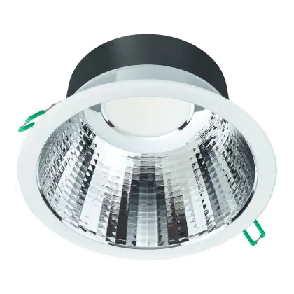 Les spots LED encastrables (aussi appelés Downlights) sont des solution éco-énergétiques permettant de remplacer les spots classiques équipés de technologie à fluorescence. Ce downlight Philips Spot encastrable LED Coreline DN142B Aluminium Blanc 19.2W 2300lm 60D - 830 | Diamètre 200mm - IP20 - UGR est conçu pour remplacer un spot classique de 2x18. La consommation de ce downlight LED est considérablement plus faible qu’un luminaire classique, à savoir, seulement 19.2 watts. Une économie d’énergie sans compromettre la qualité de la lumière. Le flux lumineux est de 2300 lumens. La lumière de ce downlight LED est diffusé à 60 degrés et offre un bon rendu des couleurs. La durée de vie moyenne de ce luminaire LED est de 50000 heures.